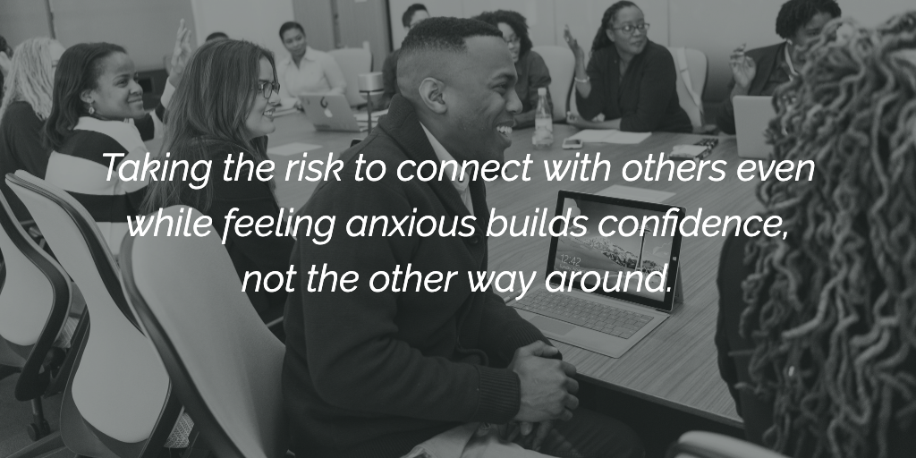 In other words, taking the risk to connect with others even while feeling anxious builds confidence, not the other way around.